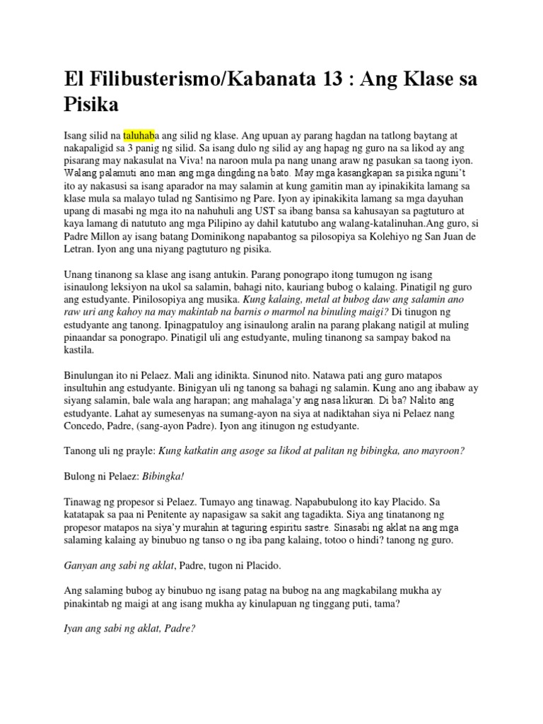 Oct 28 2019 Basahin at bigyan ng kahulugan ang mga matatalinhagang pahayag. Mar 19 2021 Ang Noli Me Tangere o mas kilala bilang Noli ay isa sa pinakamahalagang sulatin sa buong kasaysayan ng Pilipinas. Ang isang pilibustero ay ang tawag sa mga taong kalaban ng simbahan at.